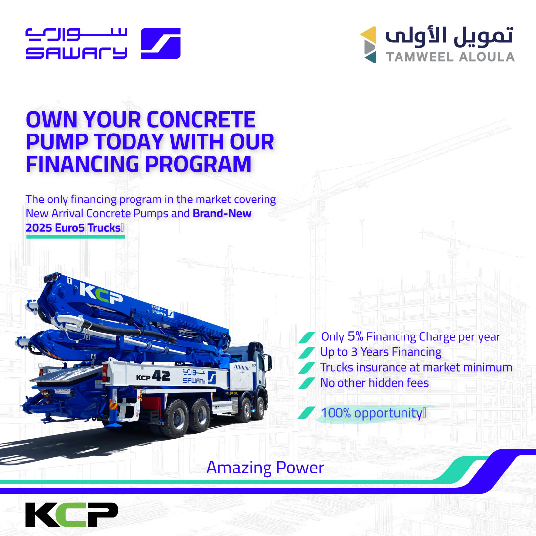 We are pleased to announce the launch of our exclusive Financing Program in collaboration with Tamweel Aloula. This program is designed to make owning your next concrete pump easier, more accessible, and financially flexible.